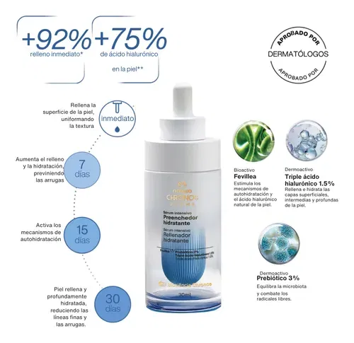 Rellena e hidrata las diferentes capas de la piel, reduciendo arrugas y líneas de expresión